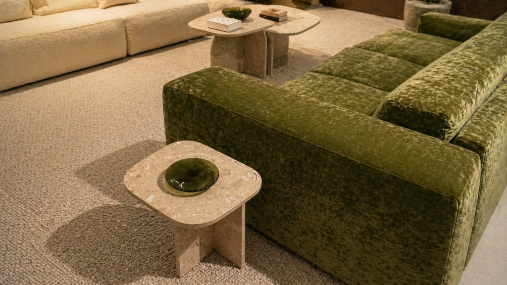 Sofás com curvas orgânicas, poltronas com volumes quase esculturais e superfícies que convidam ao toque mostram que o design está cada vez mais emocional.